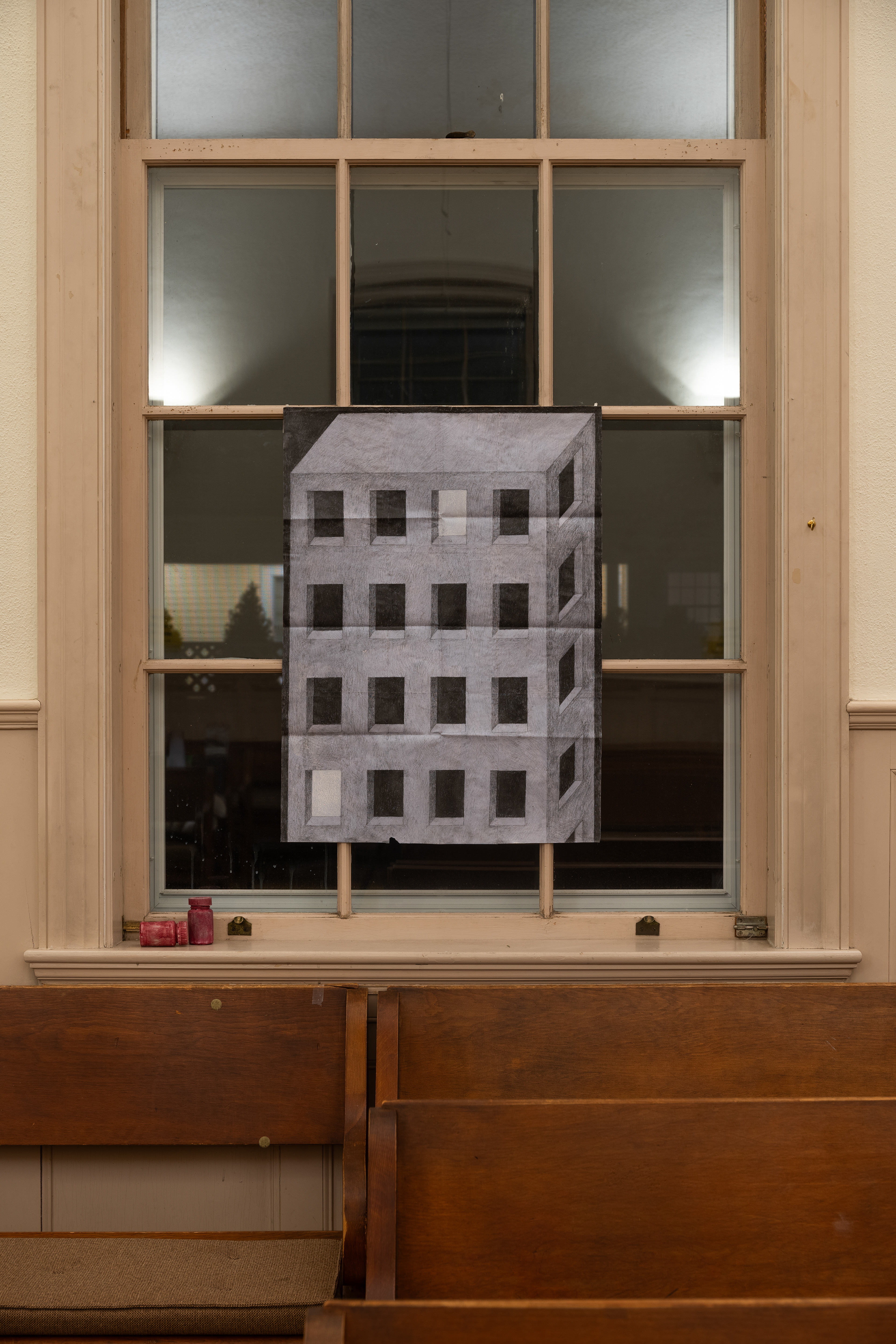 “Placeholder” holds a tender place and affords a rare occasion for being still. In the ongoing exhausting cycles of Instagram reels, news cycles, and business-as-usuals, “Placeholder” reminds us that, perhaps, we don’t have to be out or “on” all the time. Wandering across the meeting house gradually suspends my desire to discover and unearth what I’m “supposed to” understand in each art piece in a typical gallery visit. Instead, why don’t we consider everything and anything as art?—the ordinary, the unimportant, the things that we take for granted—not to place market value onto them or to reclaim their aesthetic beauty, but to tend to the quiet yet vibrant symbiosis between and around us that are always already underneath the day-to-day. I want to think with the preciousness of the mundane that consists of habits, (in)actions, and often-ignored things that saturate most parts of our days, when we take walks, have meals, or lay in bed. In this retrieval to the mundane, maybe we could be reminded of a blurred and buried childhood memory, we could listen in to a dynamic conversation that cannot be comprehended or even heard, or we could sense a deep gratitude and contentment for being alive in the present moment without wanting anything more.